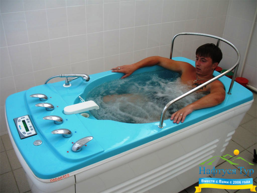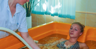 Подводный душ-массаж – водолечебная методика, в которой сочетается действие на тело пациента воды, в которую оно погружено, и местное или общее массажное воздействие струи воды изменяемой температуры (зависит от назначений) и подаваемой под давлением 1-3 атмосферы. В санаториях данную процедуру проводит подготовленный специалист с использованием специальной установки. Обычно длительность одного сеанса составляет до 15 минут, а весь курс включает 6-7 процедур.